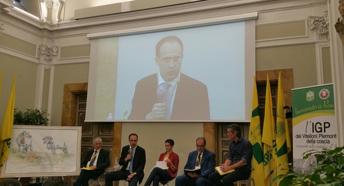 NOVARA – 09-06-2017 – Dal Novarese e da tutto il Piemonte nella capitale per una giornata speciale. Nella giornata di ieri, giovedì 8 giugno, è stato ufficializzato a Roma presso palazzo Rospigliosi l’Igp dei vitelloni piemontesi della coscia, la cui produzione interessa decine di comuni del novarese. La presentazione è stata moderata da Jimmy Ghione di Striscia la Notizia alla presenza di oltre 500 allevatori della nostra zona con Sara Baudo, presidente di Coldiretti Novara-Vco, e Roberto Moncalvo, presidente di Coldiretti.