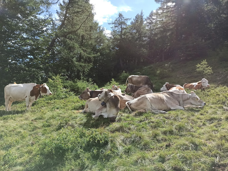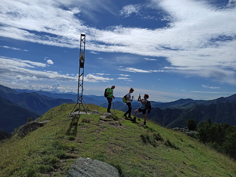 Del resto sappiamo ormai tutti che chi si occupa della manutenzione delle nostre strade sceglie sempre, con eccezionale tempismo, l’alta stagione per eseguire, con tutta calma, i lavori necessari. Un misto di sole e nuvole, abbinato ad una splendida arietta fresca, ci rende ottimisti. Parcheggiamo in località Patqueso, quota 1150, in prossimità della partenza della mulattiera che sale all’Alpe Cortino, 1491, raggiunta anche da una strada sterrata. Raggiungiamo i bellissimi prati dell’alpe e ci godiamo per qualche minuto lo splendido panorama sulla Val Vigezzo, verso nord. Entriamo nel bosco e, lungo il sentiero evidente, arriviamo a La Cima, 1810, in poco più di un’ora e mezza da Patqueso.