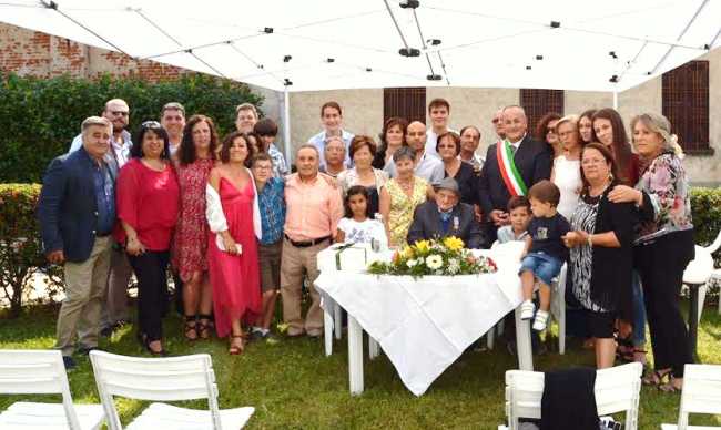 i cento anni del signor Angelo Maria De Ieso. Compiuti il 6 settembre scorso, il signor De Ieso ha ricevuto la visita del sindaco Alessandro Canelli e del consigliere Edoardo Brustia, ma non solo: anche quella di Mauro De Ieso, sindao di Pago Veiano, comune in provincia di Benevento in cui è nato. Nel 1939 è partito per Tripoli, poi, in Serbia, dopo l'armistizio è stato catturato e fatto prigioniero, salvandosi dalla fucilazione. E' stato militare anche alla Caserma Cavalli di Novara. Tutti i parenti hanno festeggiato con lui questo importante traguardo. (N.C)