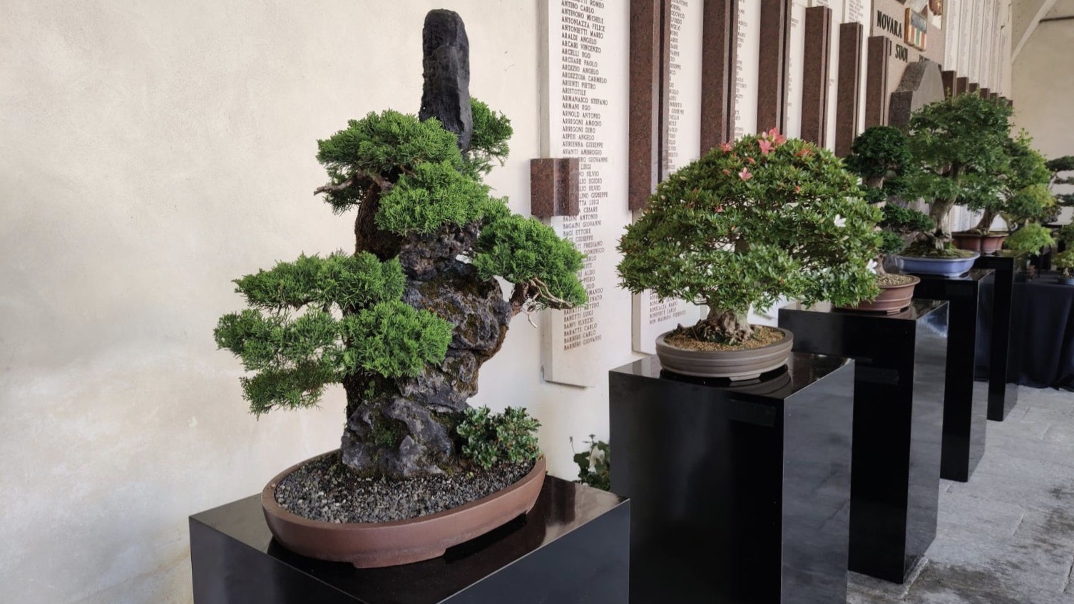 NOVARA - 15-05-2022 -- Interessante mostra dell'Arte Bonsai Club Novara. Oggi, domenica 15 maggio, i soci, con oltre 30 anni di presenza a Novara, propongono una mostra sotto il portico del Broletto, lato via Rosselli. I soci, una ventina, s'incontrano ogni settimana anche con serate a tema di tipo didattico. Appuntamento sino alle 19