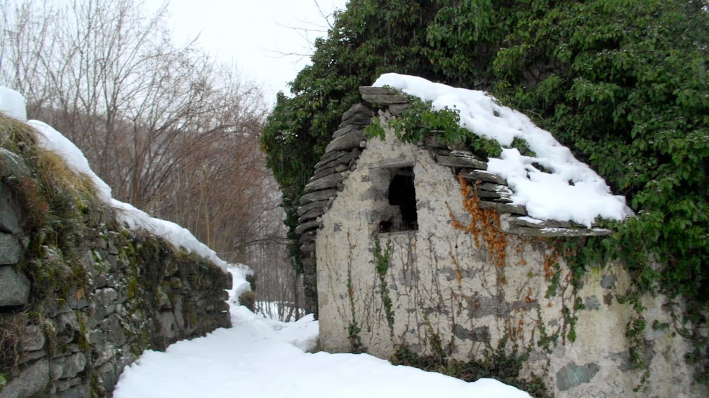 Ci attende una brutta giornata con pioggerella e nevischio. Si sceglie, quindi, un’uscita adatta alle avverse condizioni meteorologiche ed anche ai meno allenati. Le numerose e belle frazioni di Montecrestese offrono sempre angoli suggestivi e ricchi di storia. Le strade rispettano le antiche mulattiere e questo aumenta il fascino dei luoghi.