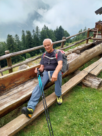 Il gruppo A, composto da quelli più in forma, si avvia verso la Val Tignaga e salirà al Passo dall’Alpe Piana di Ceppo Morelli, dalla Cappella del Cour Gil e dagli alpi Corte Sotto e Cascina Nuova. Il gruppo B, di cui faccio parte, composto anche dall’ex alpinista acciaccato e da due illustri soci (presidente e medico) al rientro dopo un periodo difficile, si avvia lungo il sentiero B 23 verso l’Alpe Laveggio.