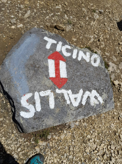 Siamo su La Via del Gries, il principe dei sentieri, GOO. Risaliamo fino a quota 2260 e sostiamo brevemente nell’unico tratto pianeggiante. Dopo un’ora siamo al Passo Gries, 2479, cruciale via d’ingresso alla “Bella Italia” nella nostra storia. Passiamo accanto alla targa che ricorda il viaggio di Richard Wagner in Italia, iniziato qui il 18 luglio 1852. Su dolci saliscendi, diretti a nord est, raggiungiamo il Passo Corno, 2485, e, in corrispondenza del primo laghetto e di una palina in legno, saliamo a sinistra e ci portiamo su un piccolo altipiano con vecchie fortificazioni. Siamo a Calcestro.