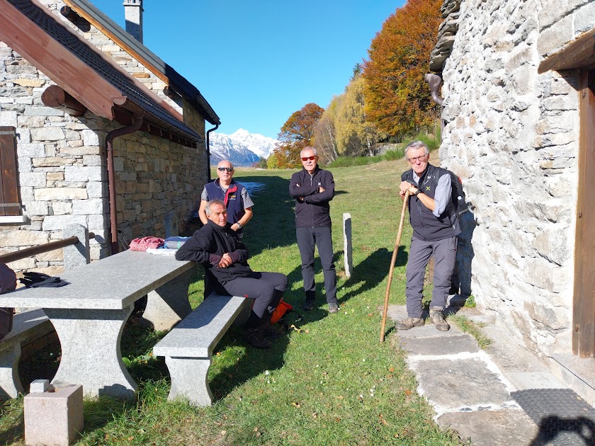 La seguiamo, passando da Cascine Bertolini, 1318, fino all’Oratorio di San Luca, 1156. Qui riprendiamo il sentiero incontrando le tre cappelle, del Gaggio, dei Genovesi e di Pusalà, 877. Torniamo sull’asfalto poco sopra Altoggio e, prima di arrivare alle case, a quota 765 prendiamo una pista sulla destra, direzione nord ovest (un’ora e un quarto). Qualche salitella incrementa il dislivello positivo, che è già abbondantemente sopra i mille metri. Alla faccia della gita “tranquilla”!