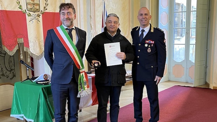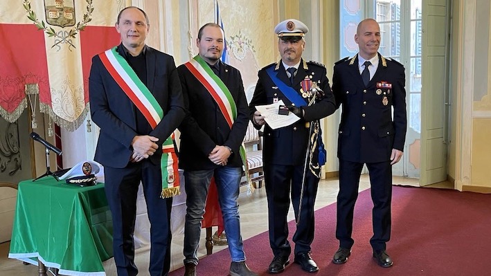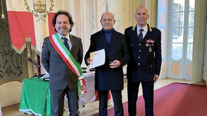 Il primo cittadino di Bellinzago Novarese Fabio Sponghini ha premiato con la stessa motivazione, il commissario Andrea Rognoni, ex-comandante della Polizia locale del paese.