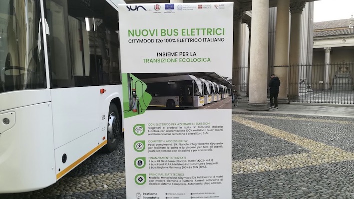 NOVARA - 25-02-2024 -- Sono stati ufficialmente presentati con l'esposizione pubblica in piazza Duomo nella mattinata di domenica 25 febbraio, i nuovi bus della Sun 100% elettrici. Si tratta di mezzi assolutamente ecologici che sono stati prodotti in Italia.