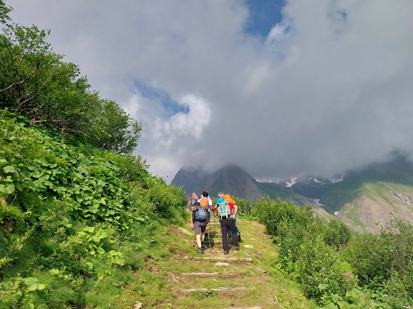 Unico problema il recupero auto, ma uno del gruppo ha l’auto laggiù che ci aspetta. La proposta “passa” con maggioranza bulgara. Lasciamo il sentiero G95 e ci abbassiamo di un centinaio di metri in Val Vannino, tenendo la sinistra. Ci fermiamo per il pranzo in un pianoro dove avevamo già sostato durante le escursioni precedenti percorse in senso contrario. Qui diventa indispensabile la conoscenza del territorio, garantita dalla nostra guida di oggi, che seguiamo sempre con cieca fiducia. Dopo la pausa iniziamo una traversata in quota, diretti a oriente, su terreno facile ma senza sentiero, solo rari ometti e con saliscendi che incrementano il dislivello.