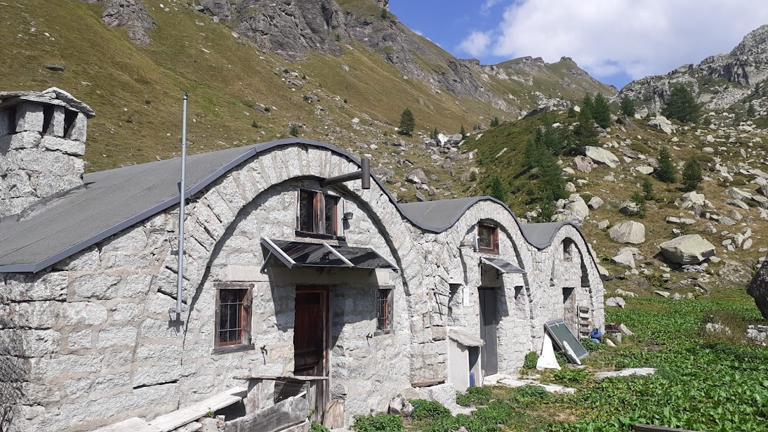 Questo è un terreno interessantissimo dal punto di vista speleologico. Qui vicino, infatti, si trova la “Voragine di Poiala”, considerata fra le più belle grotte del Piemonte. Breve pausa e invertiamo la rotta decisamente verso sud. Strada e poi sentiero H08, molto aereo nell’ultimo tratto a picco sul Lago di Agaro, ci portano all’Alpe Bionca o Plaangee, 1992, con tre caratteristiche baite a tetto semicircolare, attaccate fra loro.