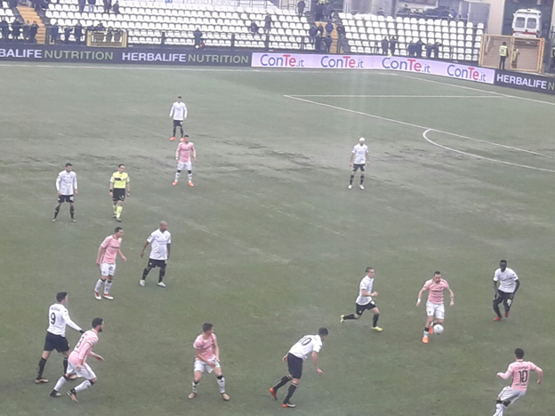 per la Pro che, pur senza il suo uomo migliore ovvero Vives, blocca un Palermo in crisi reduce da tre stop di fila. Quinto risultato utile consecutivo per Grassadonia, che con un po’ di fortuna poteva trasformarsi in un successo, ma i bianchi pagano l’assenza di un attaccante degno di tal nome: Morra ha solo corsa e volontà, Reginaldo è poco mobile e non va mai al tiro e mostra l’età, inguardabile Raievic quando entra, statico e poco voglioso. L’unico che salta l’uomo, dopo che viene immesso in campo, è Kanoute. Troppo poco per sperare di segnare sfruttando magari i soliti inserimenti di Germano e Castiglia. Buona invece la prestazione della difesa che doveva fronteggiare un attacco grandi firme. Nonostante sia stata sottoposta ad una grande e continua pressione la retroguardia si è ben disimpegnata con Konate sugli scudi, il più elegante del gruppo. Primo tempo con Palermo che mantiene il controllo del gioco, ma non si rende mai pericoloso. Tutti chiusi i varchi con una Pro attenta. La migliore occasione per i bianchi: Morra serve Ghiglione che mette in area dove Castiglia è contratto al momento del tiro. Al 39’ Pomini si deve distendere per deviare un tiro ravvicinato di Reginaldo, poi Castiglia manda alto. Nel macchinoso Palermo l’unico che crea superiorità numerica è Coronado con i suoi spunti, ma Tedino lo toglierà nel II tempo. Ad inizio ripresa l’unica palla gol confezionata dal deludente duo Morra-Reginaldo, ma il tiro dell’ex Siena è banale e centrale. Più pericoloso il Palermo. Prima Moreo manda alto di testa al 62’ poi si fa vivo Nestorowski ma il macedone non centra la porta (67’). Si deve giungere fino al 77’ per vedere Chocev che mette paura con un diagonale a Pignacelli. Grassadonia mette in campo Raievic , Kanoute e Altobelli. Solo il secondo dà maggior vivacità, gli altri due sono negativi: Raievic non va mai al tiro e perde anche alcuni palloni preziosi, Altobelli spreca la migliore occasione al 85’: contropiede con il Palermo sbilanciato, ma il centrocampista, invece di serivire Kanoute tutto solo preferisce sparacchiare alto. E nel finale Trajanoski obbliga Pignacelli alla deviazione evitando la beffa. Pro che sarà di nuovo in campo a Cesena martedi’ sera in una sfida salvezza e poi avrà una gara da ultima spiaggia in casa con il Perugia che ha ingaggiato Diamanti, un giocatore che avrebbe fatto bene a questa Pro coraggiosa, ma anemica.