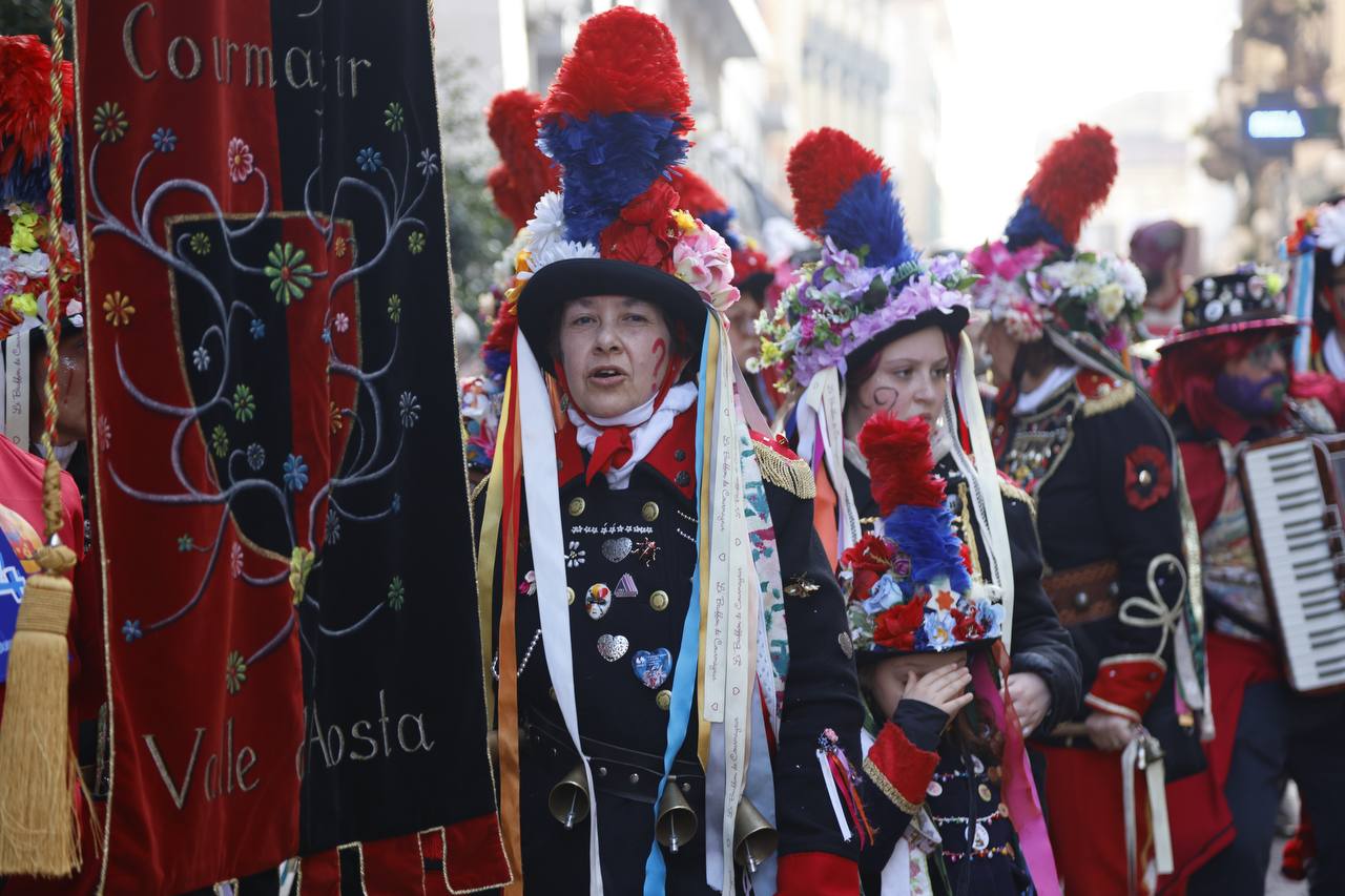 NOVARA - 23-02-2025 -- Un bel pomeriggio soleggiato ha fatto da cornice, domenica 23 febbraio, alla tradizionale sfilata per le vie cittadine del Carnevale Novarese. Padroni di casa Re Biscottino e la Regina Cuneta. La sfilata è partita dopo il ritrovo avvenuto sull'allea accanto al castello. Presenti alla manifestazione, alla quale per l'amministrazione era presente l'assessore Piantanida, 18 gruppi provenienti da tutta Italia e di figuranti in rappresentanza di altre 20 realtà nazionali. Per la prima volta erano presenti le maschere da Misterbianco, Ascoli Piceno. Presenti inoltre i rappresentanti del Com.It.Es. (Comitato Italiani all'Estero) Canarie, Francesco Emilio Fedele ed Engie Corvo, con i quali Re Biscottino e la Cuneta stanno coordinando la presenza di una nutrita delegazione di maschere italiane al carnevale di Santa Cruz di Tenerife, ai primi di marzo.