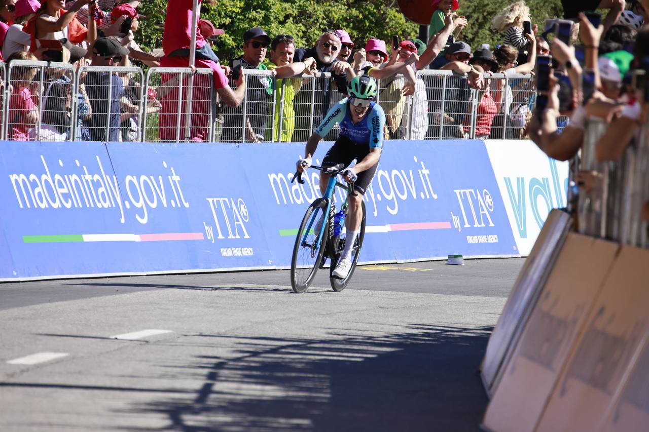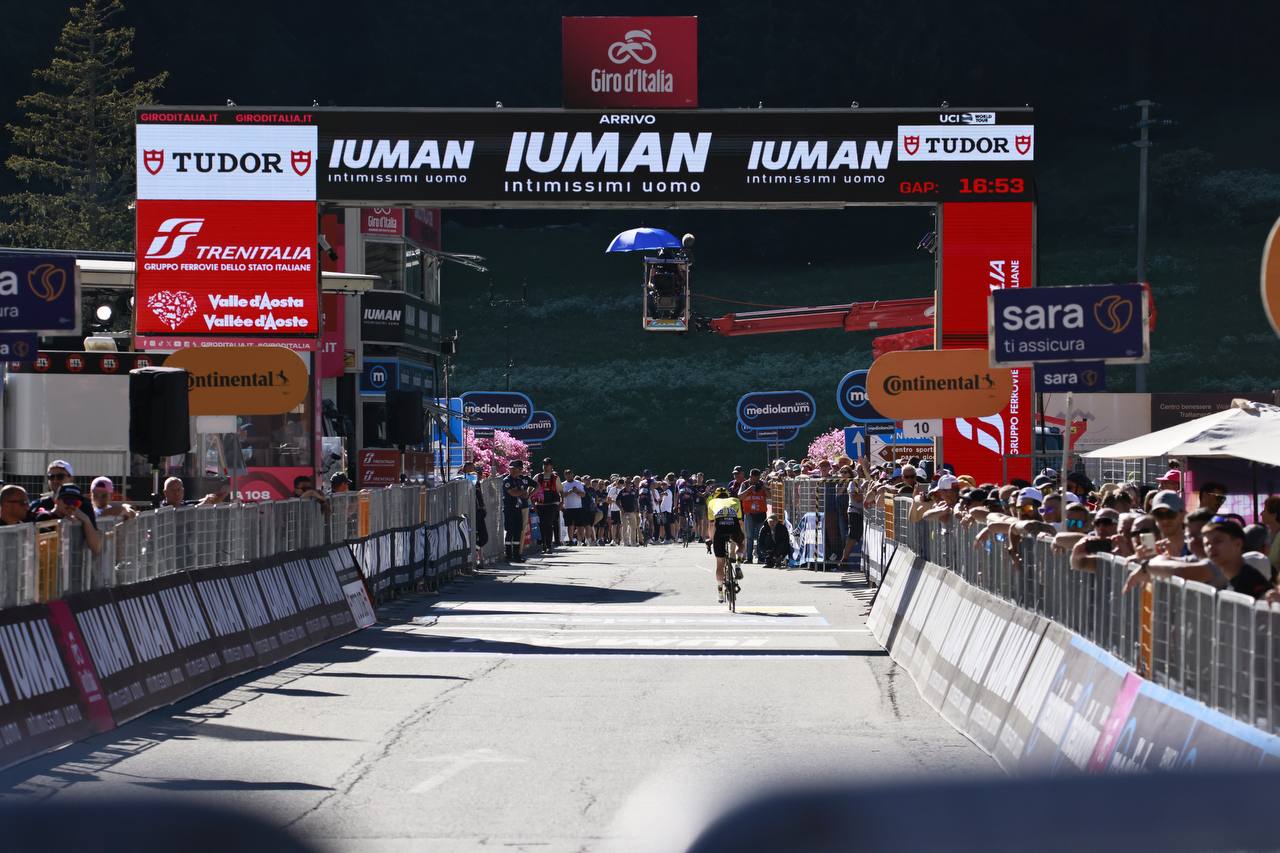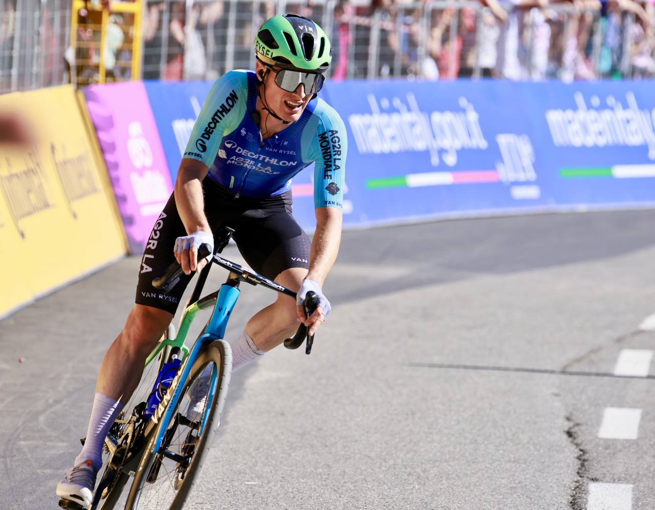 CHAMPOLUC - 30-05-2025 -- Nicholas Prodhomme si aggiudica la 19^ tappa del Giro d'Italia, la Biella-Champoluc. Per lui, arrivato solitario sul traguardo, una vittoria frutto di una fuga partita da lontano che l'ha visto afrronare i cinque Gran Premi della Montagna (per un dislivello di 4.950 metri) dapprima con altri compagni, poi in solitario. La Maglia Rosa, resta sulle spalle di Isaac Del Toro, arrivato secondo a 58", stesso tempo per Richarda Carapaz che ha tentato di accorciare su Prodhomme, senza riuscirci.