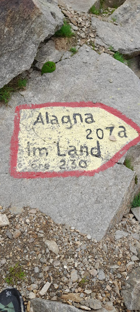 Con il mio cinquanta per cento di sangue macugnaghese che ribolle seguo gli amici nel tratto ancora pianeggiante fino all’Alpe La Piana, 1613. Da qui a quel che resta dell’Alpe Schena, 2005, il sentiero a tornanti ha pendenze ancora morbide, ma diventa più faticoso e sempre “infinito”, come tutta questa meravigliosa valle. Arriva anche il sole.