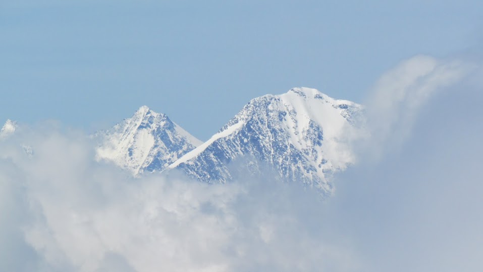 Restiamo a lungo sull'aerea vetta, incredibile punto panoramico. I fotografi giocano con le nuvole che, ogni tanto, si scostano gentilmente e ci lasciano vedere parte del paradiso che ci circonda: Monte Leone, Weissmies, Mischabel. Scendiamo ripercorrendo il tragitto di salita fino al rifugio e qui pranziamo, ovviamente all'esterno: per fortuna non piove, anzi il cielo torna azzurro e splende il sole. Ce la prendiamo con calma e ripartiamo con cautela, vista la ripida discesa dopo il meritato ristoro. Ripassiamo dall’Alpe Anfirn e raggiungiamo le auto (poco meno di due ore e mezza). All'altezza di Coimo il nostro abituale bar è riaperto e ne approfittiamo.