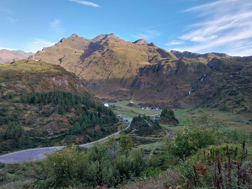 Oggi, per evitare partenze troppo veloci di cui risento solo io, gli amici mi mettono in testa al gruppo a fare il passo, da vecchio saggio o da “vaca vegia” a seconda dei punti di vista. Ci dirigiamo a nord, in dolcissima salita fino a Frua di Sopra. Qui, al bivio per l’Alpe Ghighel, inizia il sentiero G22a che fa parte del TB (Tour del Basodino). E’ evidente, diretto a oriente, destra, e il pendio diventa subito impegnativo. Nonostante il passo del vecchio, dopo un’ora siamo all’Alpe, 2125. Proseguiamo in direzione sud est, inizialmente in salita fino a congiungerci con il sentiero G22 proveniente dal Lago Castel, poi in piano fino al guado del Rio Scelp, a quota 2200 circa.