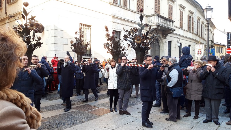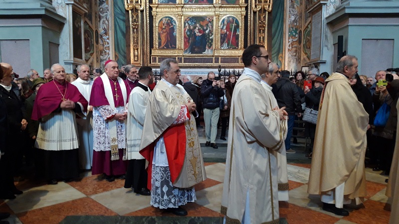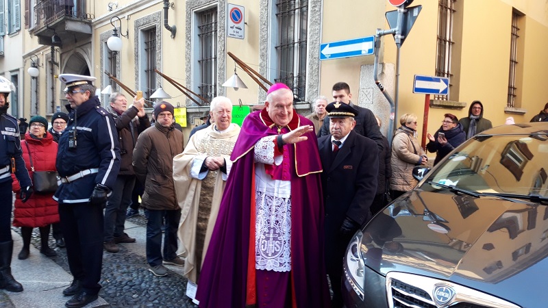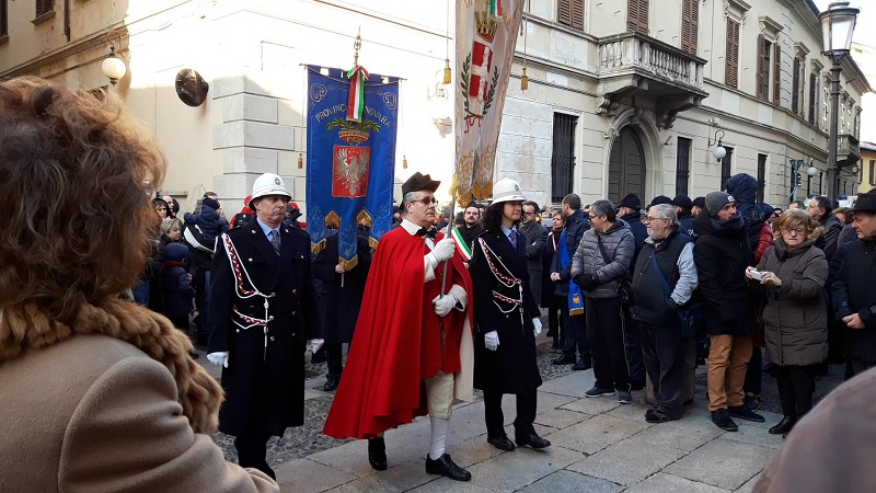 NOVARA – 22-01-2019 - Fede e tradizioni a Novara per la patronale di San Gaudenzio. Oggi, martedì 22 gennaio, come di consueto la città si è fermata per la celebrazione in onore del patrono. Ad aprire la giornata dedicata a Gaudenzio è stato il corteo civico lungo le vie della città. Cerimoniale consolidato da tempo: partenza dal municipio delle autorità civili e militari per arrivare sotto la Cupola. Parte integrante della “scenografia” della festa, le alte uniforme dei Carabinieri a cavallo e gli immancabili banchetti dei “marunat” con le loro castagne. Fuori dalla basilica di San Gaudenzio le autorità, insieme ai canonici del Capitolo gaudenziano, hanno atteso il vescovo Franco Giulio Brambilla per compiere il tradizionale “omaggio del fiore”. I cesti di fiori metallici, condotti in corteo dai consiglieri comunali, sono stati collocati nel gigantesco lampadario che sovrasta il centro della basilica. Come da tradizione, esso viene prima posizionato a terra e poi, riportato in alto, sotto gli occhi emozionati dei novaresi accorsi a vedere ancora una volta l’antico ed inimitabile rito. A seguire la Messa officiata dal vescovo, Monsignor Franco Giulio Brambilla.