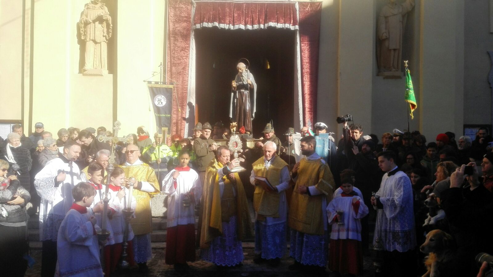 CASTELLETTO TICINO-16-01-2017- Animali in piazza per la tradizionale benedizione di S. Antonio, patrono degli animali. Ad attenderli domenica mattina, il parroco Don Fabrizio Corno. Cani in maggioranza ma anche un cavallo, una coppia di canarini in gabbia, dei criceti. Con loro la statua di S. Antonio, santo patrono di Castelletto Ticino e protettore di tutti gli animali, portata in processione sulla piazza Matteotti. Il sindaco Matteo Besozzi spiega: “ E’una tradizione che si rinnova per il nostro Santo Patrono. In passato giungevano molti più animali in piazza, ora in gran parte sono animali da affezione, ma è sempre un avvenimento gradito e sentito dalla popolazione.” Popolazione che si è stretta intorno al parroco che ha benedetto ad uno ad uno gli animali presenti, tra cui i cani dell’Associazione Nazionale Carabinieri di Giussano in provincia di Milano guidati da Marco Valsecchi che ricorda : “ Alcuni mesi fa i nostri cani sono intervenuti per le ricerche di un anziano scomparso nei boschi. Grazie ad uno dei nostri elementi migliori, Pepe, l’uomo è stato ritrovato. Ora Pepe con Jack, Artu’, Luna, Boss, Shake, Ice e Yatta ha ricevuto l’annuale benedizione”.